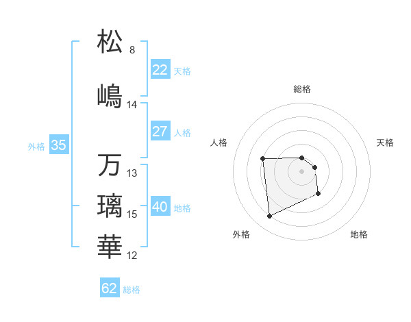 松嶋 万璃華さんを姓名の画数から五運を鑑定