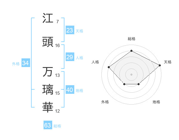 江頭 万璃華さんを姓名の画数から五運を鑑定