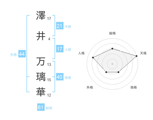 澤井 万璃華さんを姓名の画数から五運を鑑定