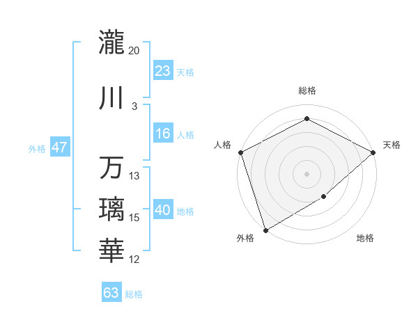 瀧川 万璃華さんの外格は47画の5点!