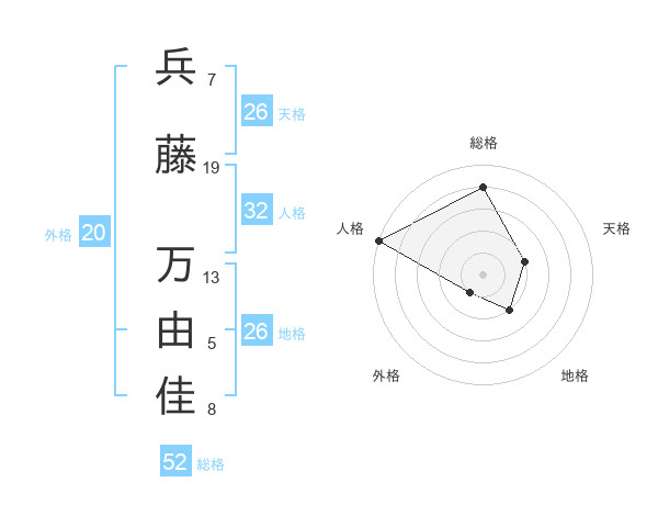 兵藤 万由佳さんを姓名の画数から五運を鑑定