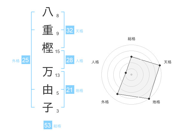 八重樫 万由子さんを姓名の画数から五運を鑑定