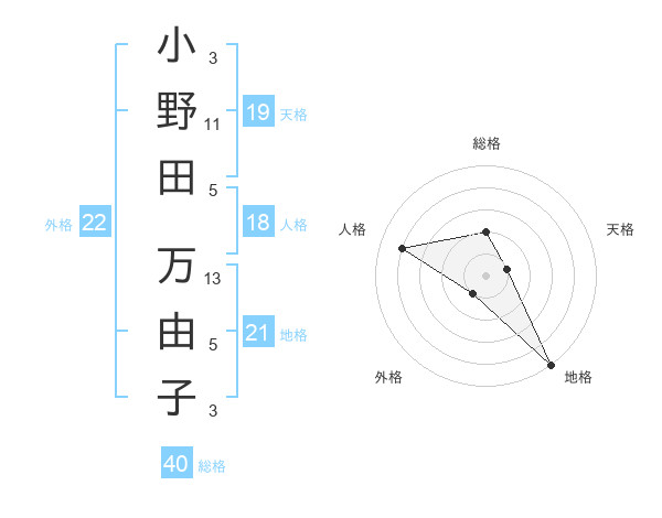 小野田 万由子さんの天格は19画の1点!