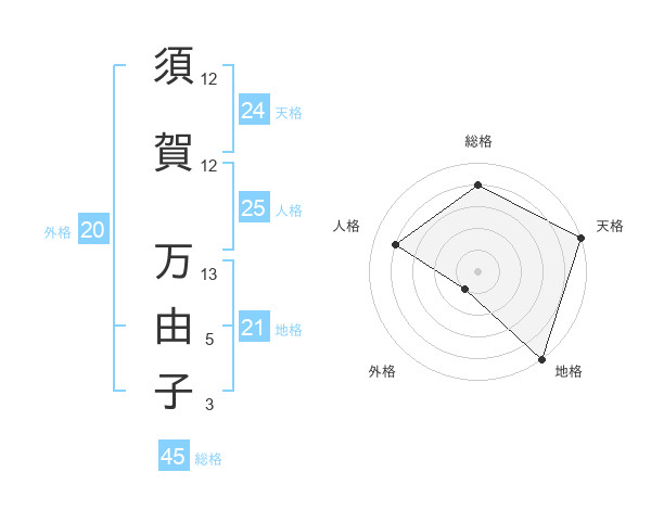 須賀 万由子さんを姓名の画数から五運を鑑定