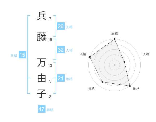 兵藤 万由子さんを姓名の画数から五運を鑑定