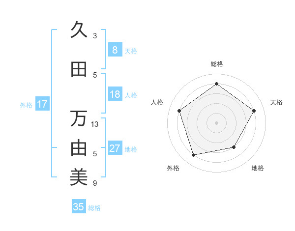 久田 万由美さんの天格は8画の4点!