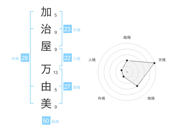 加治屋 万由美さんを姓名の画数から五運を鑑定