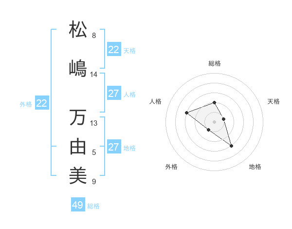 松嶋 万由美さんを姓名の画数から五運を鑑定