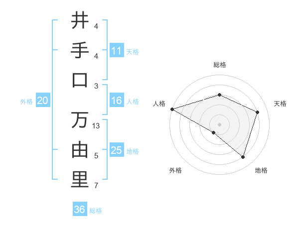 井手口 万由里さんを姓名の画数から五運を鑑定