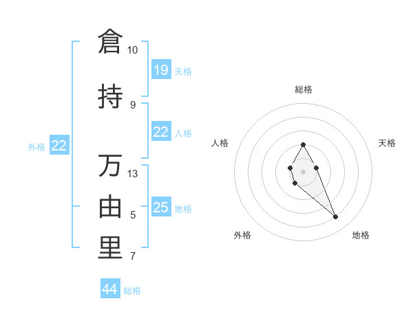 倉持 万由里さんの外格は22画の1点