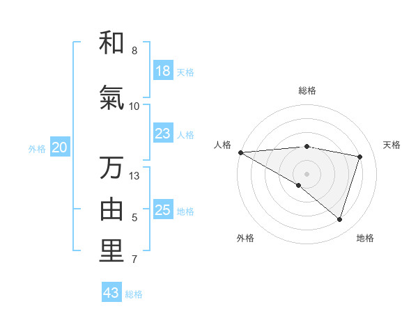 和氣 万由里さんを姓名の画数から五運を鑑定