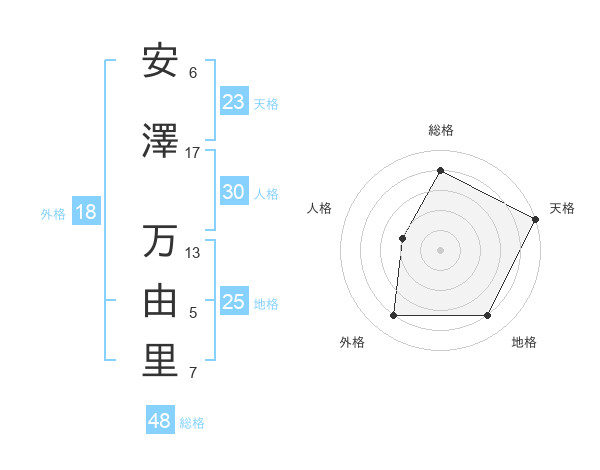 安澤 万由里さんの天格は23画の5点!