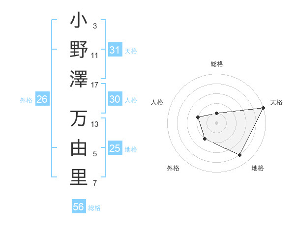 小野澤 万由里さんを姓名の画数から五運を鑑定