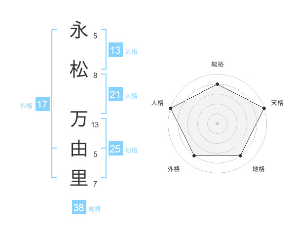 永松 万由里さんの総格は38画の4点!