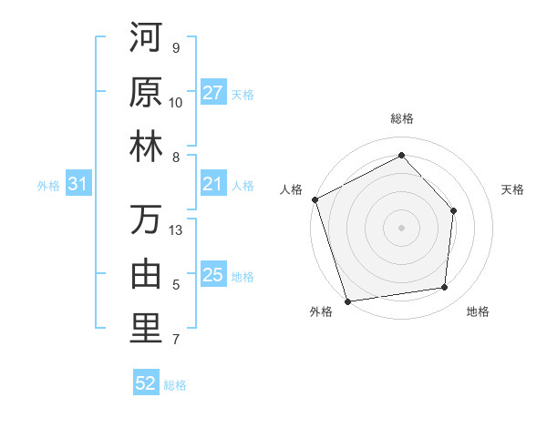 河原林 万由里さんを姓名の画数から五運を鑑定