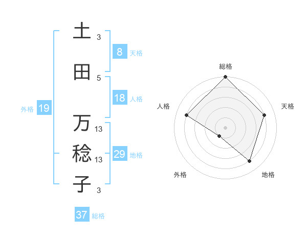 土田 万稔子さんの総格は37画の5点
