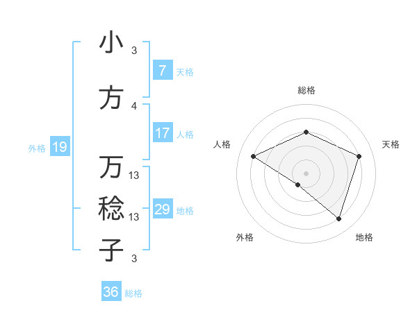 小方 万稔子さんを姓名の画数から五運を鑑定