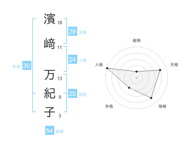 濱﨑 万紀子さんを姓名の画数から五運を鑑定