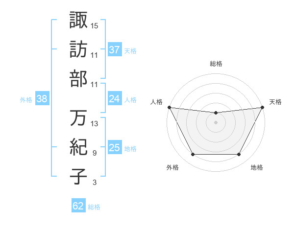 諏訪部 万紀子さんの天格は37画の5点