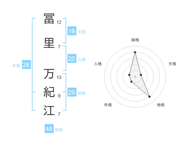 冨里 万紀江さんを姓名の画数から五運を鑑定