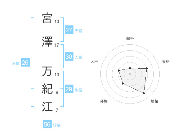 宮澤 万紀江さんの天格は27画の3点!
