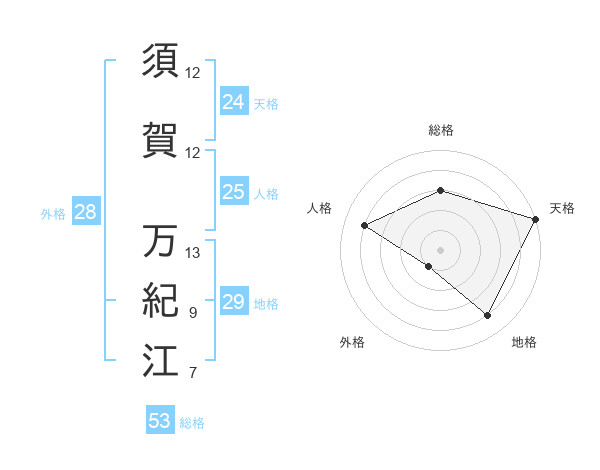 須賀 万紀江さんの天格は24画の5点