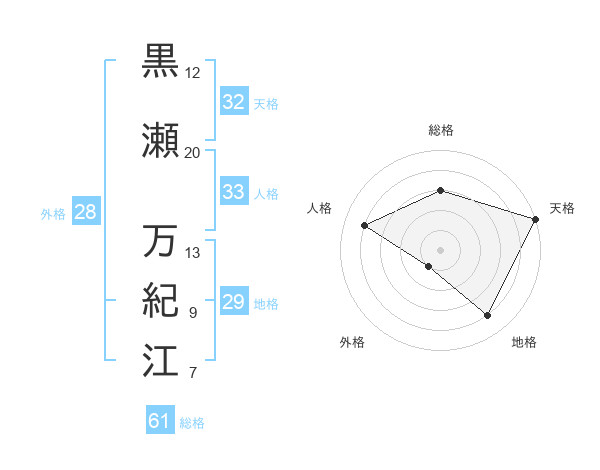 黒瀬 万紀江さんを姓名の画数から五運を鑑定