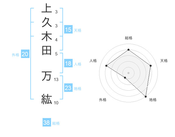 上久木田 万紘さんを姓名の画数から五運を鑑定