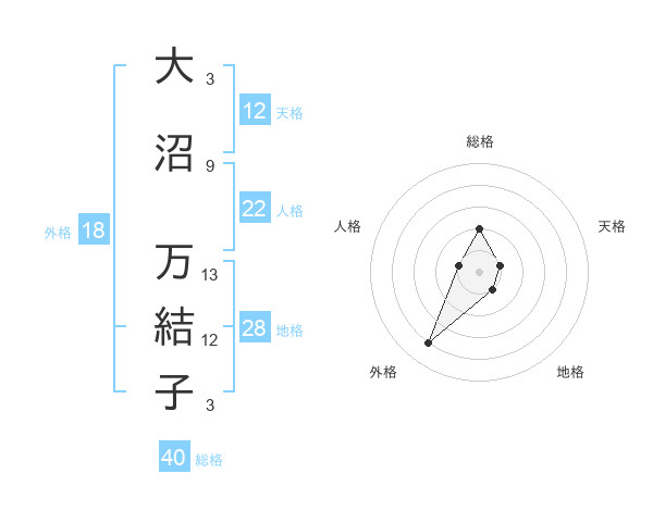 大沼 万結子さんを姓名の画数から五運を鑑定