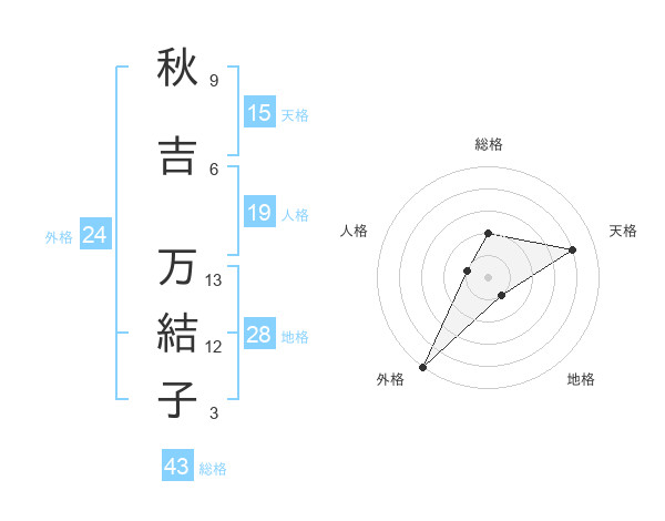 秋吉 万結子さんを姓名の画数から五運を鑑定