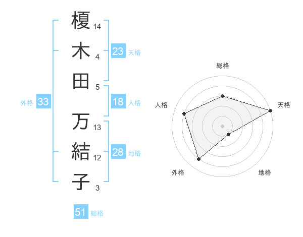 榎木田 万結子さんの総格は51画の3点!