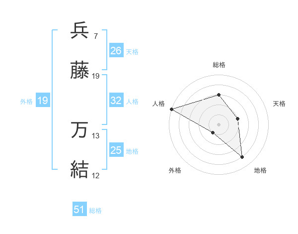 兵藤 万結さんを姓名の画数から五運を鑑定