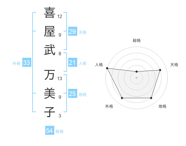 喜屋武 万美子さんを姓名の画数から五運を鑑定