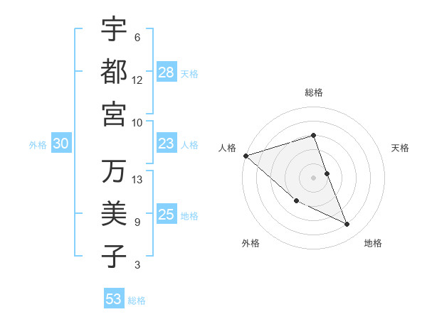 宇都宮 万美子さんを姓名の画数から五運を鑑定