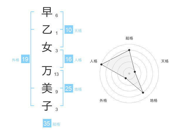 早乙女 万美子さんを姓名の画数から五運を鑑定