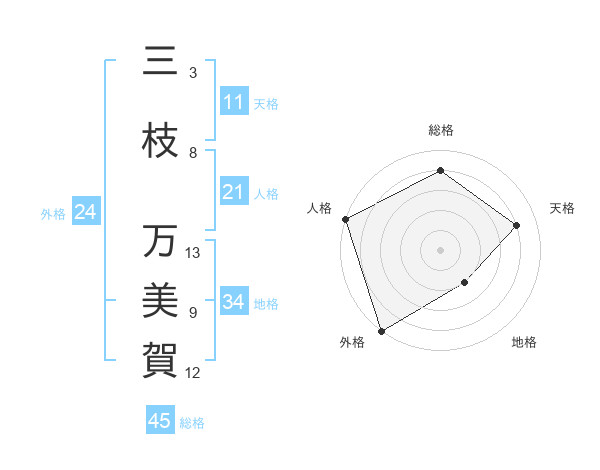 三枝 万美賀さんを姓名の画数から五運を鑑定