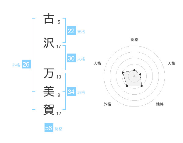 古沢 万美賀さんを姓名の画数から五運を鑑定