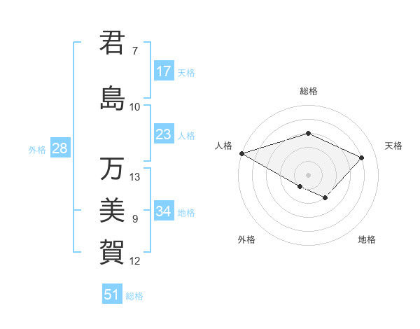 君島 万美賀さんを姓名の画数から五運を鑑定