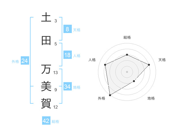 土田 万美賀さんの総格は42画の3点!
