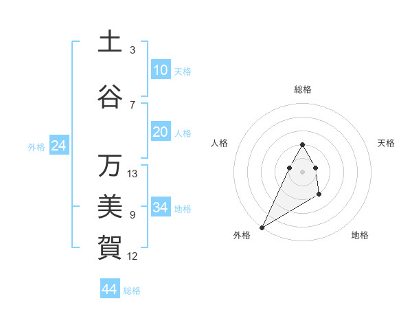 土谷 万美賀さんを姓名の画数から五運を鑑定
