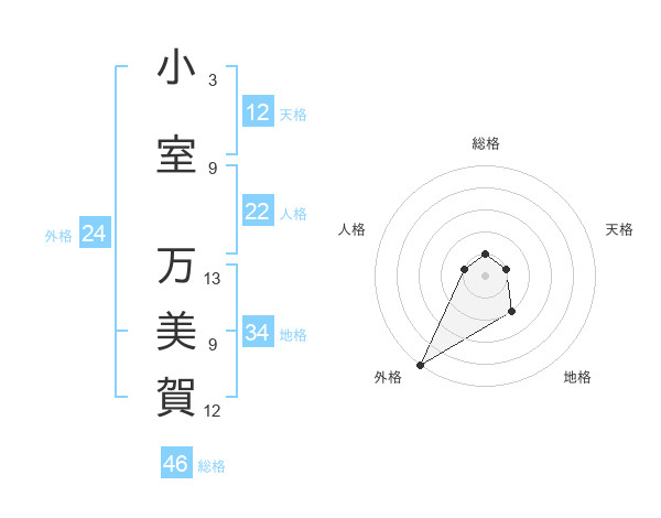 小室 万美賀さんの外格は24画の5点!