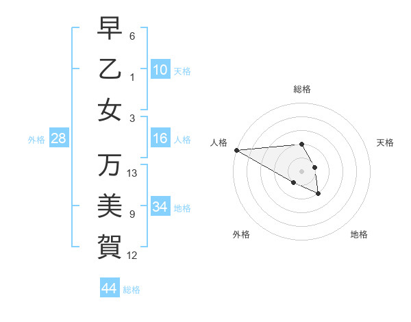 早乙女 万美賀さんを姓名の画数から五運を鑑定