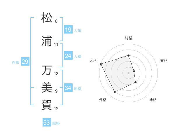 松浦 万美賀さんを姓名の画数から五運を鑑定