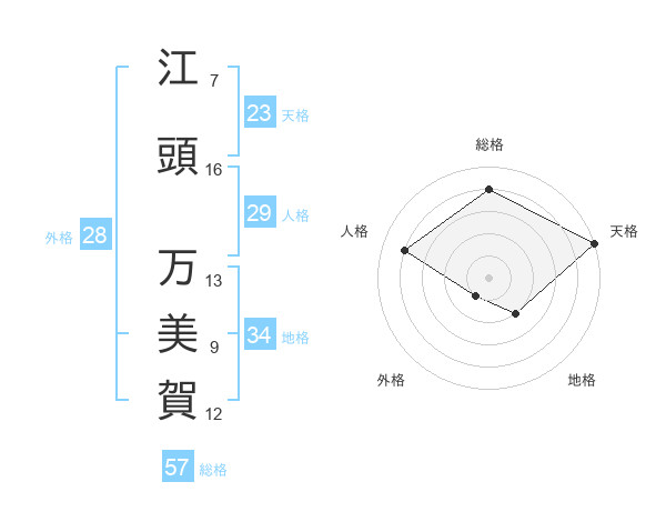 江頭 万美賀さんを姓名の画数から五運を鑑定