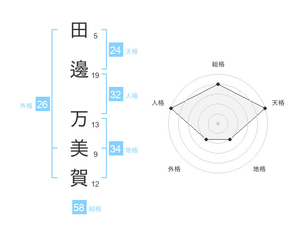 田邊 万美賀さんを姓名の画数から五運を鑑定