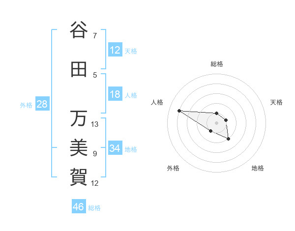 谷田 万美賀さんの総格は46画の1点!