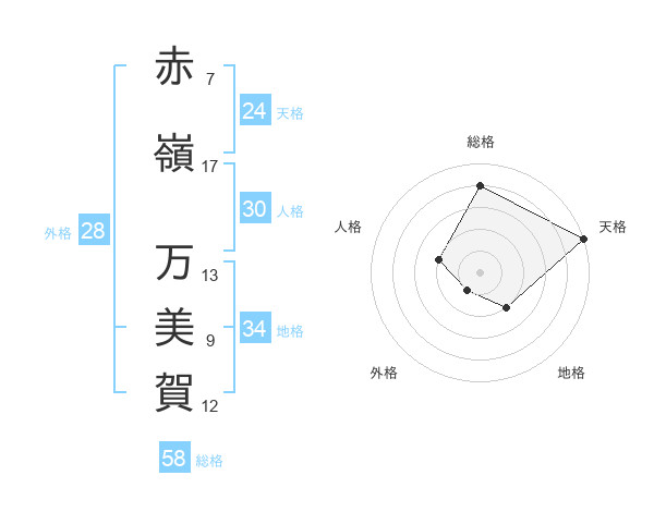 赤嶺 万美賀さんを姓名の画数から五運を鑑定