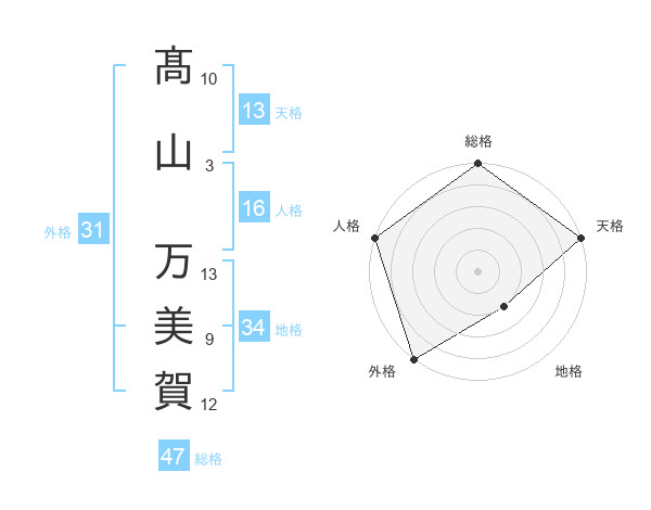 髙山 万美賀さんの総格は47画の5点!