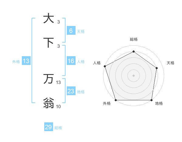大下 万翁さんの総格は29画の4点!