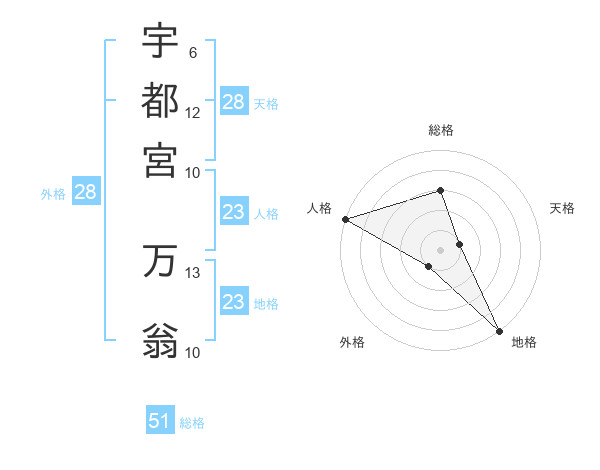 宇都宮 万翁さんの総格は51画の3点!